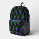 Dieser Bowling bedruckte Rucksack hat ein durchgehendes Bowling-Muster mit Bowling-Button-Hintergrundmuster und einem glühenden Bowlingkugelmuster oben mit neongrünen Musiknoten. Sie können dieses Bowling-Muster kleiner oder größer auf diesem Rucksack machen. Das ist ein tolles Geschenk für jeden, der ein großer Bowling-Fan ist.