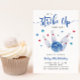 Die Geburtstagsfeier des Fun Boys mit der Aquarellbild-Einladung eines Bowlingballs, der einige Buttone mit blauen und roten Sternen trifft. Im Text steht: "Lasst uns Spaß machen!"