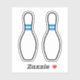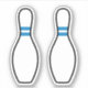Stickers mit zwei weißen Bowling-Buttonen mit blauen Streifen und schwarzen Konturen.