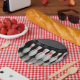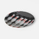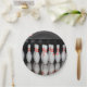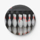 Papier Teller mit einem Foto von Bowling-Buttonen.