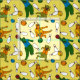 Bowling-Geschenke mit diesem gemusterten Stoff erschaffen. Das Material hat niedlichen Cartoon Illustrationen von Dinosauriern in Bowling Shirts Bowling vor einem hellgelben Hintergrund.