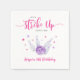 Niedliche Bowling Thema Mädchen Geburtstagsparty Serviette mit Aquarellbild einer Bowlingkugel trifft einige Buttone mit rosa und lila Sternen fliegen. Im Text steht: "Lasst uns Spaß haben!"