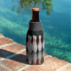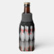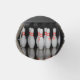 Eine Flasche cooler mit Bildern von Bowling-Buttonen.