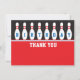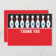 Bowling Party Wohnung Dankeschön Karte (4.5 x 6.25") mit einer Reihe von Bowling-Buttonen und das Wort "Geburtstag" auf den Buttonen geschrieben. Entspricht der gleichen Art Geburtstagsfeier Einladung. Für individuelle Wünsche oder Hilfe bei der Anpassung verwenden Sie bitte den Shop-Kontakt-Link.
