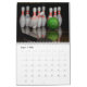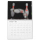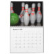 Ein Kalender mit Fotos von Bowling-Buttonen.