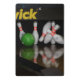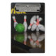Eine Miniwand mit einem Foto Bowling-Buttone.