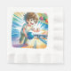 Der Bowling eines niedlichen Anime-Jungen widmete sich der Geburtstagszeitung Napkins. Die Farben sind orange, blau und grün.