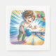 Der Bowling eines niedlichen Anime-Jungen widmete sich der Geburtstagszeitung Napkins. Die Farben sind orange, blau und grün.