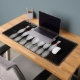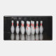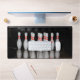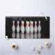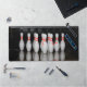 Eine Schreibtischmatte mit einem Foto aus einem Rack aus Bowling-Buttonen.