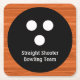 Coole Bowling-Team trinken Küster, die mit einem simulierten Rotholz-Korn Hintergrund und Bild einer Bowlingkugel schlau aussehen. Passen Sie den Text auf Ihren Weg und zeigen Sie Ihren Teamgeist.