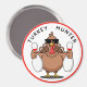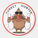 A cool magnet for anyone who loves bowling - this round magnet (available in different sizes) features the coolest of turkeys wearing sun shades and holding two bowling pins. The words "Turkey Hunter" is in bold font at the top.