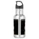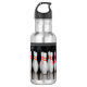 Eine Wasserflasche mit einem Bild eines Racks von Bowling-Buttonen.