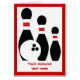 Bowlingball und Buttone vertikale Grußkarte, die ein minimalistisches Symbol von drei schwarzen Bowling-Buttonen mit roten Streifen, eine Kugel und Ihr Text auf weißem Hintergrund mit rotem Rand zeigt. Personalisieren Sie es und ändern Sie Text mit Monogramm, Namen oder Ihrer Nachricht. Die perfekte Geschenkidee für den fanatischen Bowler und den Bowling Liebhaber.