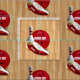 Bowlings-Ball-Schuh und Button mit Ihrem individuellen Namen in den roten und weißen Farben auf hölzernem Bowlingsgassenboden. Sie können ihn mit Ihrem eigenen Namen, Team oder Ihrem Bowlingsnamenverein personifizieren