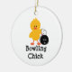 Ein niedliches gelbes Küken nahe bei einem Paar Buttonen und Bowlingsball auf Bowlings-Küken-T - Shirts, T-Shirts, Aufkleber, Tassen und mehr Neuheitswaren und -kleid, die ein niedliches Geschenk für Ihren Bowling team und Freunde lassen. Klicken Sie an die folgende Verbindung, um die ganze unseren niedlichen Chrissy H. zu sehen.