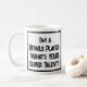 Ein lustiger Slogan auf einer Tasse, die sagt: "Ich bin ein Bowls Player. Was ist DEIN super Talent?" Tasse für einen Bowls Player. Schwarzweißtext.