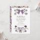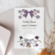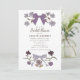 Coquette und rustikale Brautdusche Einladungskarte mit handgezeichneter Abbildung von Bögen und Blume in lila Farben.