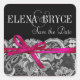 Bows Ribbon & Lace | Schwarzer Fuschia Quadratischer Aufkleber