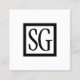 Eine quadratische Visitenkartenvorlage mit Initialen in einem 1,25-Zoll-Quadrat mit einem fett formatierten 3mm-Rahmen. In dieser Version befinden sich die Initialen im fett formatierten Schriftart Integrity. Name und Beruf/Berufsbezeichnung sowie Telefon-, E-Mail- und Website-Adresse in schwarz auf der Rückseite auf weißem Hintergrund unter Verwendung von Variationen des Matt Antique Schriftartes. Diese Vorlage ist auch ein guter Ausgangspunkt für weitere Anpassungen.