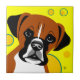 Vector Boxer Hundekunst mit hellorangen Kreise und gelber Hintergrundfarbe.