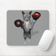 Graues Kätzchen mit Boxhandschuhen - besser nicht mit ihr durcheinander.