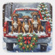 Bring playful, devoted charm to your holiday season with this energetic Boxer Christmas design! This festive scene features three handsome and expressive Boxers sitting attentively in the back of a classic red pickup truck, nestled in a picturesque snowy winter forest. The vintage truck is adorned with a vibrant Christmas wreath, twinkling with red and gold ornaments and warm, glowing lights. Soft snowflakes gently fall, enhancing the winter wonderland effect. A decorated Christmas tree in the background completes this heartwarming picture, making it an ideal Christmas gift for any Boxer owner, dog lover, or admirer of festive and beloved dog art. This design perfectly captures the joyful spirit of the holidays.