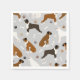 Niedliche Boxer Hunde sitzen und stehen mit Blinde-, Weiß- und Fingerhunden mit verstreuten Hundeknochen und Pappmustern.
