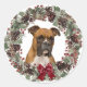 Boxer Dog Red Bow Pinecone Wreath Weihnachten Runder Aufkleber