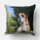 Boxer-Hund, der auf einen Felsen legt Kissen