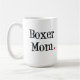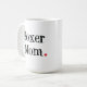 Weiße Tasse mit schwarzem Text und einem kleinen roten Herzen