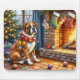 Boxer Sitting by Fireplace with Christmas Lights Mousepad