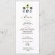 Machen Sie Ihr Weihnachtsessen mit diesem maßgeschneiderten Dinner Menü mit eleganter Aquarellbilderin von Boxwood Topiary mit rotem Bogen ganz besonders.