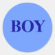 Blue Aufkleber sagt Junge in kühnen tiefblauen Buchstaben. Ideal für Party-Spiele im Baby Gender Reveal Party.