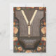 Rustic Fall Boy Baby Dusche Einladung mit Bow Krawatte Burlap Wood Zickzack und Orange Pumpkin Illustrationen