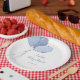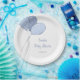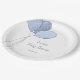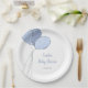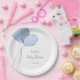 Die Teller sind schlicht und modern mit blauen Babyduschpapier und drei blauen Ballons mit Punktmuster. Ideal für Baby Dusche Party. Illustriert und entworfen von Patricia Alvarez.