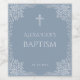 Boy Baptism Dusty Blue Imitats Silver Cross & Blät Weinetikett