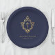 Boy Baptism Navy Blue Imitats Gold Wappen Religiös Pappteller