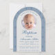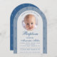 Boy Baptisse Foto Modernes, dunkelblaues Bogenskri Einladung