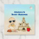 Boy Beach Baby Sandcastle in Surfboard Babydusche Geschenkanhänger