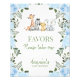 Boy Blue Rose Safari Baby Dusche Favoriten Signieren Hübsche Blumenjungen Safari-Babydusche mit einem Aquarellgiraffe, Elefant, Zebra und Babylion.
