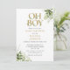 Oh Junge Dusche Einladung mit eleganter Goldtypografie und hübschem botanischem Grün. Entwickelt von Thisisnotme©