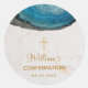 Boy Confirmation Blue Geode Elegant Script Marble Runder Aufkleber