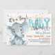 Boy Elephant Baby Dusche Einladung Blue & Orange