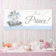 Elephant Prince Babydusche Banner mit bezauberndem Elefantenprinz auf blauem Polka Dot Hintergrund. Dieses Baby Elefant Babyduschbanner lässt sich leicht mit dem von Ihnen gewünschten Schriftart-Stil anpassen.