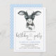 Farm Geburtstagsfeier mit niedlichem Aquarellbabykalb mit einer Bogen-Krawatte auf blauem Polka-Dot-Hintergrund. Diese bezaubernden Kuh Geburtstagsfeier Einladungen sind einfach auf Ihre Veranstaltung zugeschnitten, indem Sie einfach Ihre Details hinzufügen. Sie können auch eine Hintergrundfarbe hinzufügen.