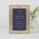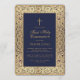 Boy First Communion Blue Gold Floral Frame Elegant Einladung