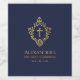 Boy First Communion Navy Blue Elegant Gold Wappen Weinetikett