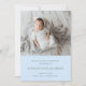 Foto-Geburtsankündigungskarte mit einem schlichten Design mit einem quadratischen Bild vorne mit Babyname und seinen Geburtsstatistiken in Grau über blauem Hintergrund. Auf der Rückseite befindet sich eine Collage aus Foto mit zwei horizontalen Bildern und einer benutzerdefinierten Nachricht. Diese einfache Geburtsankündigungskarte ist eine großartige Möglichkeit, die Ankunft Ihres Neugeborenen anzukündigen.