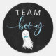 Wählen Sie Team blau bei einem Geschlecht offenbaren Party mit diesem Aufkleber! Illustration eines Gespenstes. Im Text steht "Team boo-y".