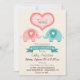 Boy & Girl Twin Pink & Aquamarin Elephants Kinderd Einladung